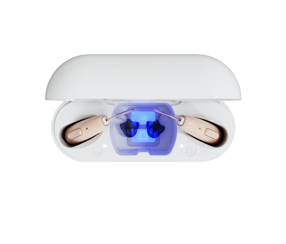 Place your hearing aids in the case until charged, then pair them with the Audien App.
